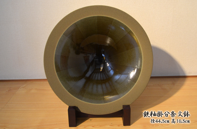 鉄釉掛分条文鉢